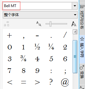 4. 选择不同的字体,泊坞窗面板就会出现不一样的符号字符。