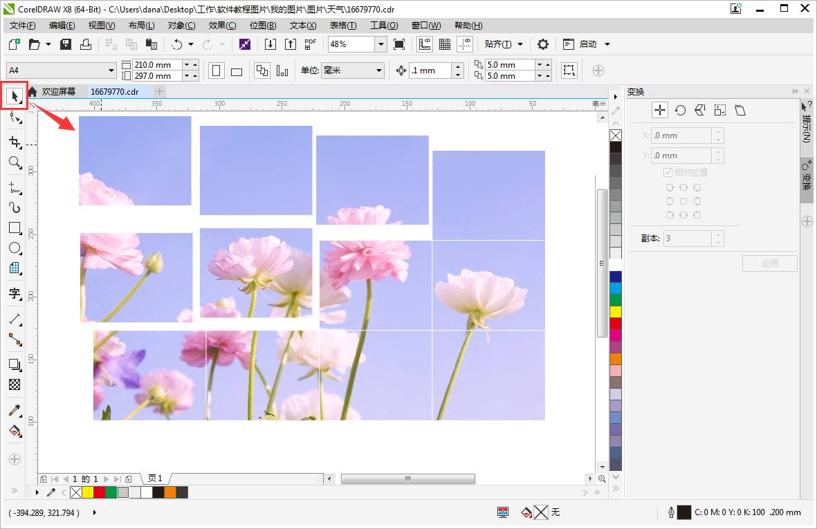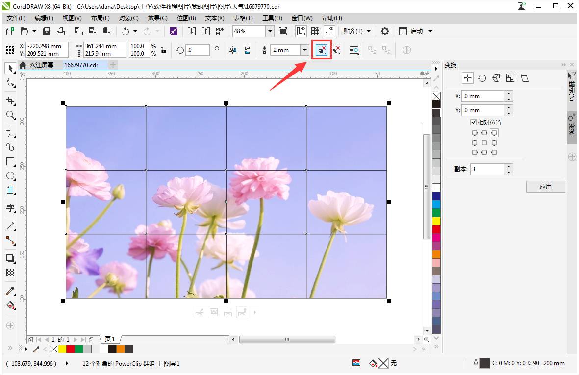 CorelDRAW如何等分分割图片