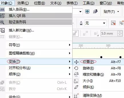 步骤二 点击对象→变换→位置,打开“变换”泊坞窗。