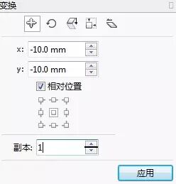 步骤三 在“变换”泊坞窗中,勾选“相对位置”复选框,在“水平”和“垂直”数值框中输入对象移动后的目标位置参数。