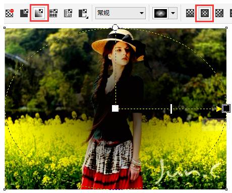 6. 应用透明度工具拖动控制线中的白色矩形调节钮,可以改变对象透明深度。