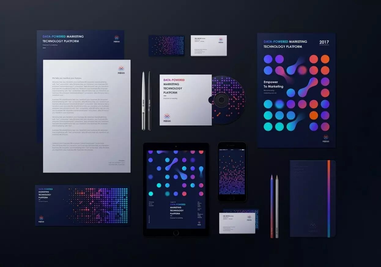 新Logo摒弃了原来单调的中英文字,采用标识图形和中文标识结合的设计。将新的品牌核心“数据”、“赋能”、“连接”用更具象化的图形进行表达;同时保留原先的品牌色,加入更具科技感和数据感的色彩与其融合表达新的核心。