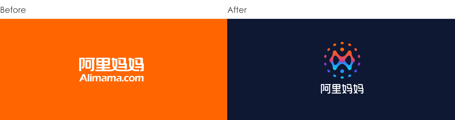 近年来,阿里妈妈已经逐渐从主要为淘系商家提供服务到“走出淘系”。不仅聚焦于电商效果广告,而是全面升级为涵盖品牌、电商,跨媒体跨平台,品效协同的大数据营销中台。原本的Logo从传达的内容上看,已经不能承载阿里妈妈新的内涵。