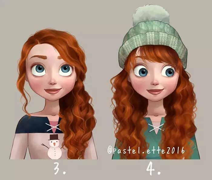 国外画画@pastel大神把喜欢的迪士尼公主们,换了更有趣好看的发型。