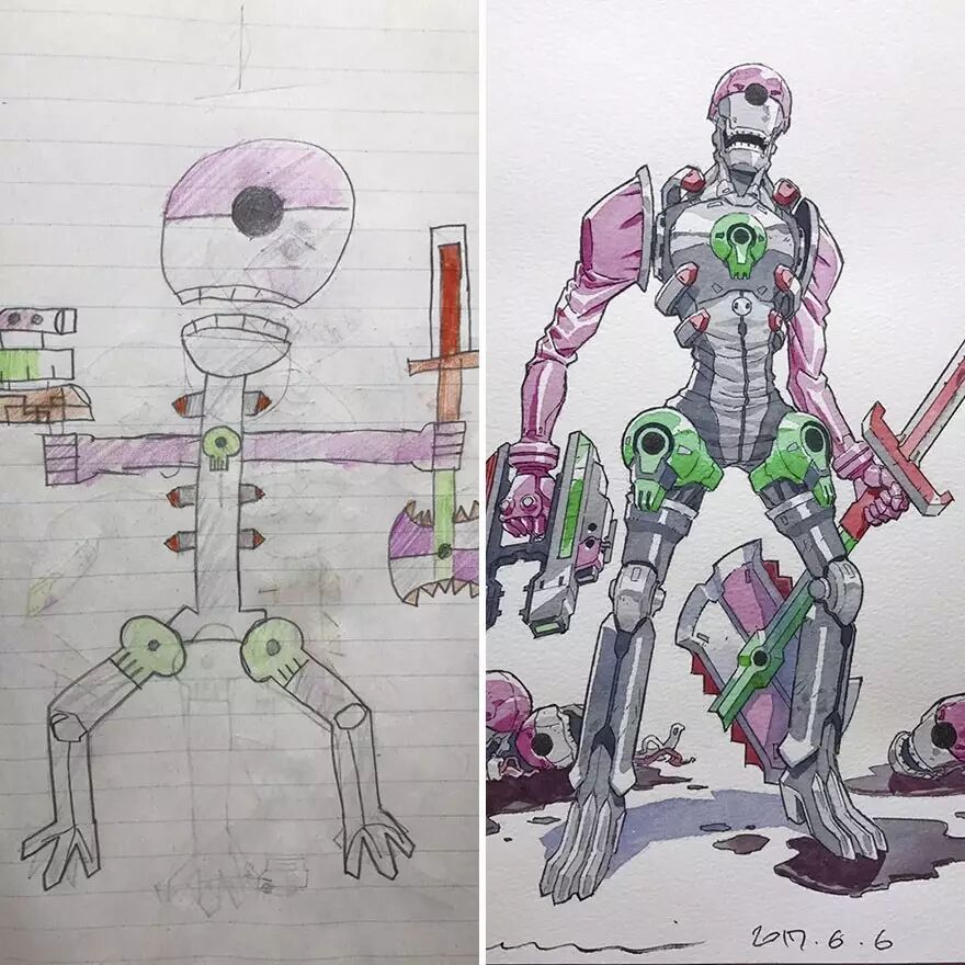 爸爸把他儿子的涂鸦变成了动画人物,看上去很酷