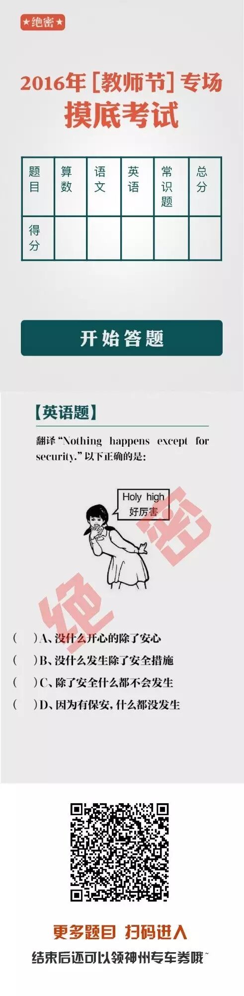 挑战2016年【教师节】专场摸底考试,阔别学校已久的你能考多少分?答题结束后还可以领专车券哦~