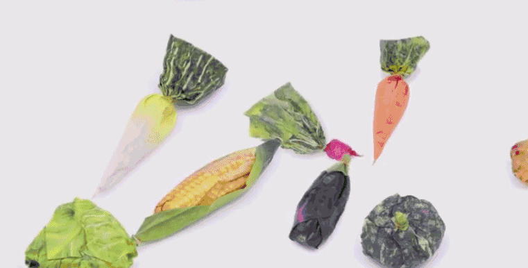 然后,用可降解的包装纸包上肥料和对应的种子,包出蔬菜相应的形状,又可以重回市场了。