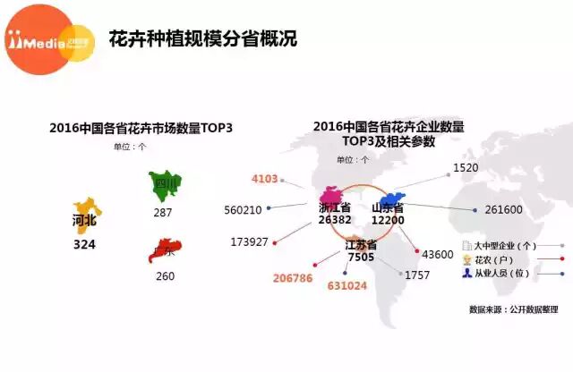 花卉种植规模分省概况