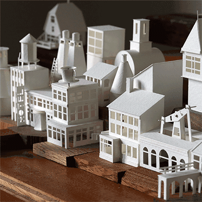 一座迷你的纸都市渐渐成型