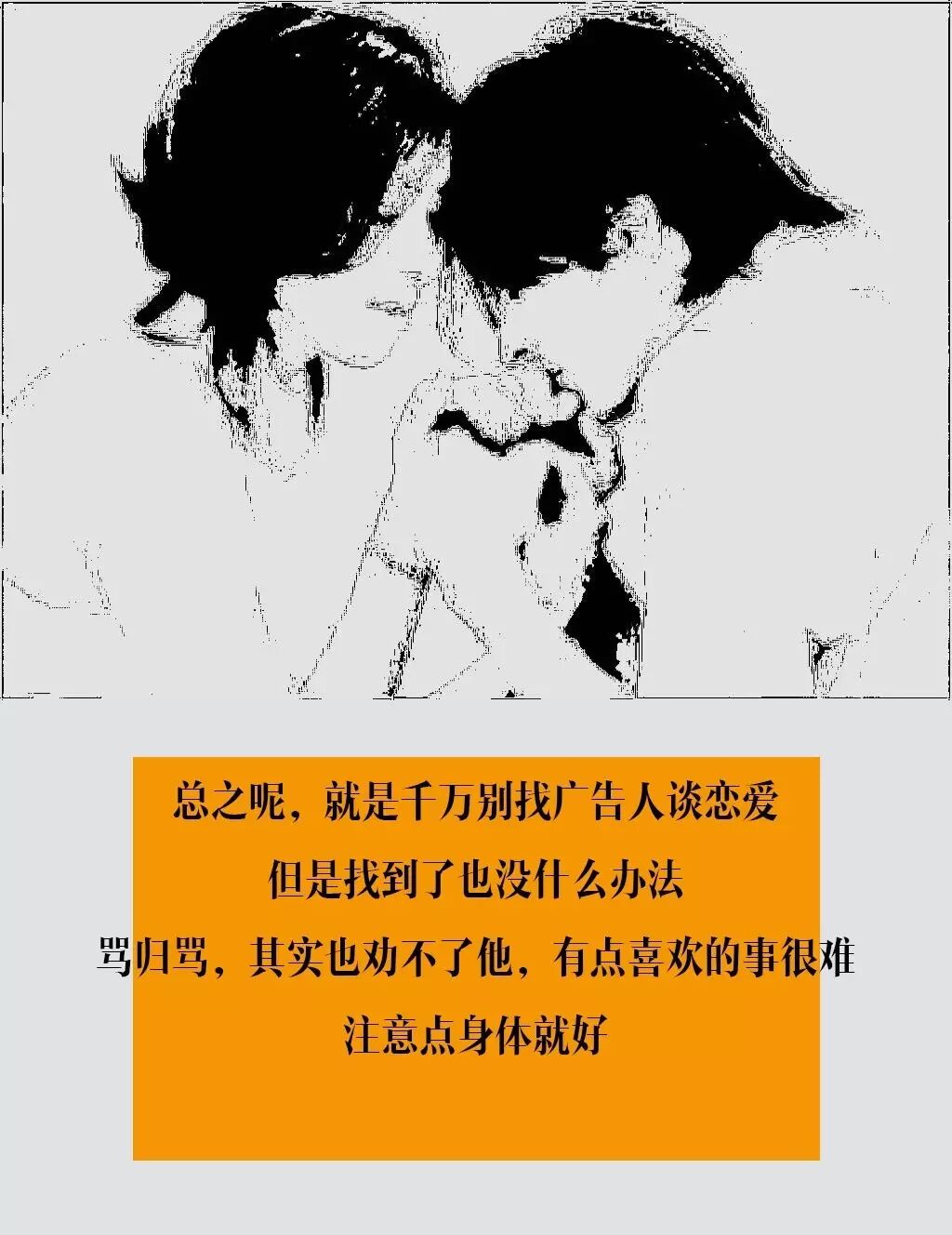 如果你找了个广告人当男朋友……基本上你所幻想的幸福、喜悦、甜蜜、浪漫……通通都不存在。唯一能说得通的,就是他在追求你的时候不怎么加班。