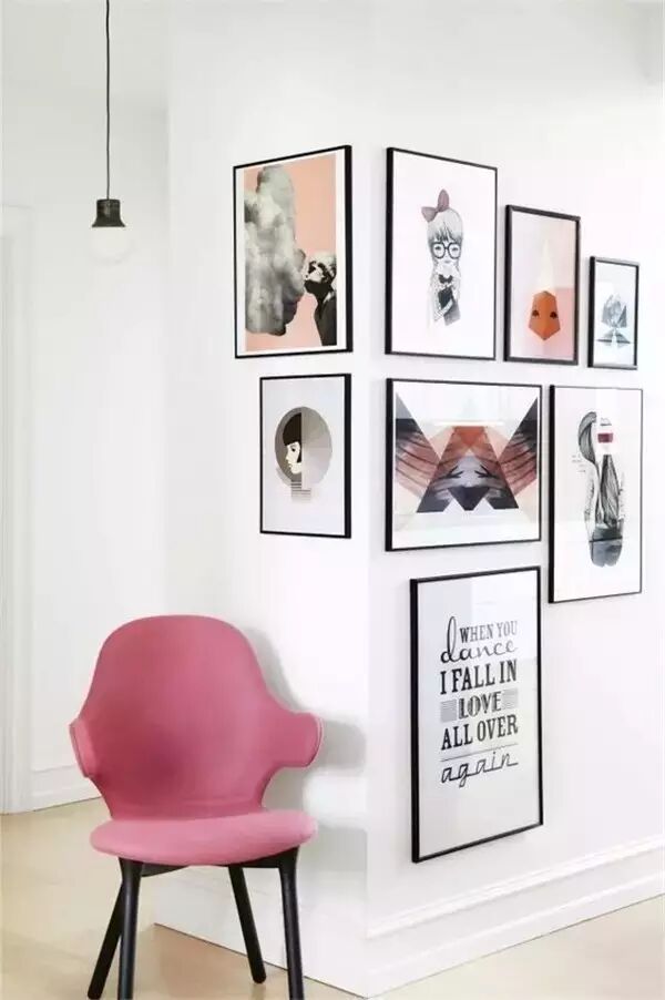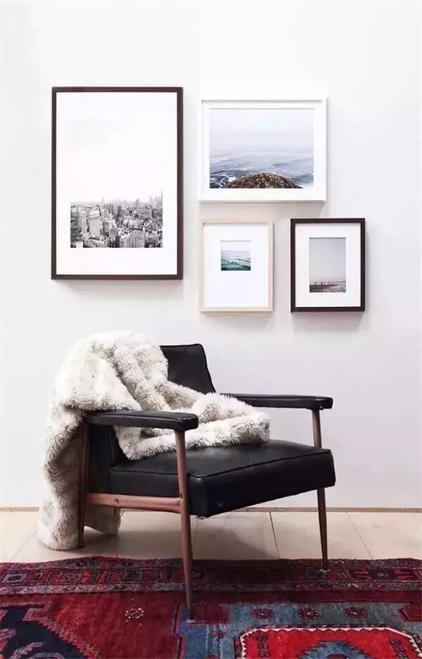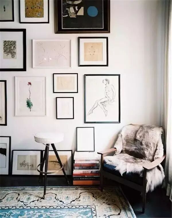 如果你喜欢艺廊感,或是比较偏好简洁的空间感,可以将幅面大小相同的画作,以整齐的格状挂放。