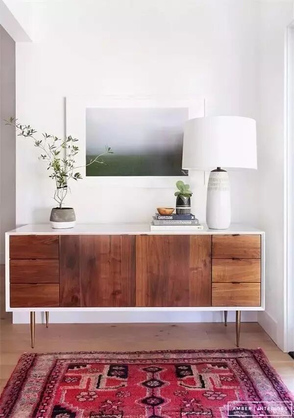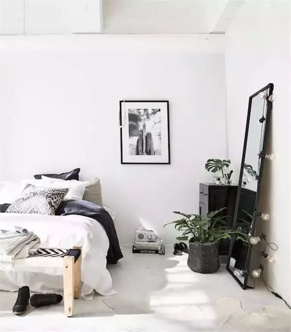 由于大面积高纯度的色彩在简约风中很少被使用,因此选择挂画可选颜色鲜艳明快些的抽象画;或简单大方的线条图案、几何图案,以达到点睛的装饰作用。
