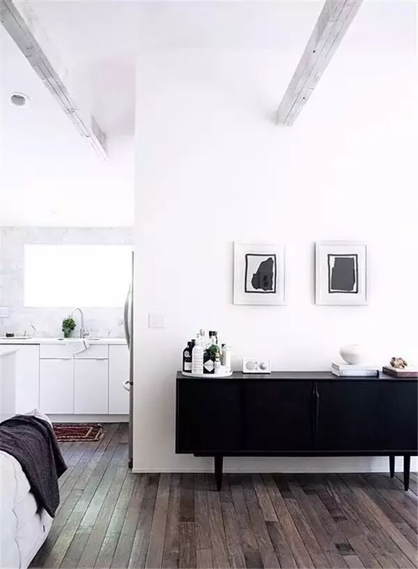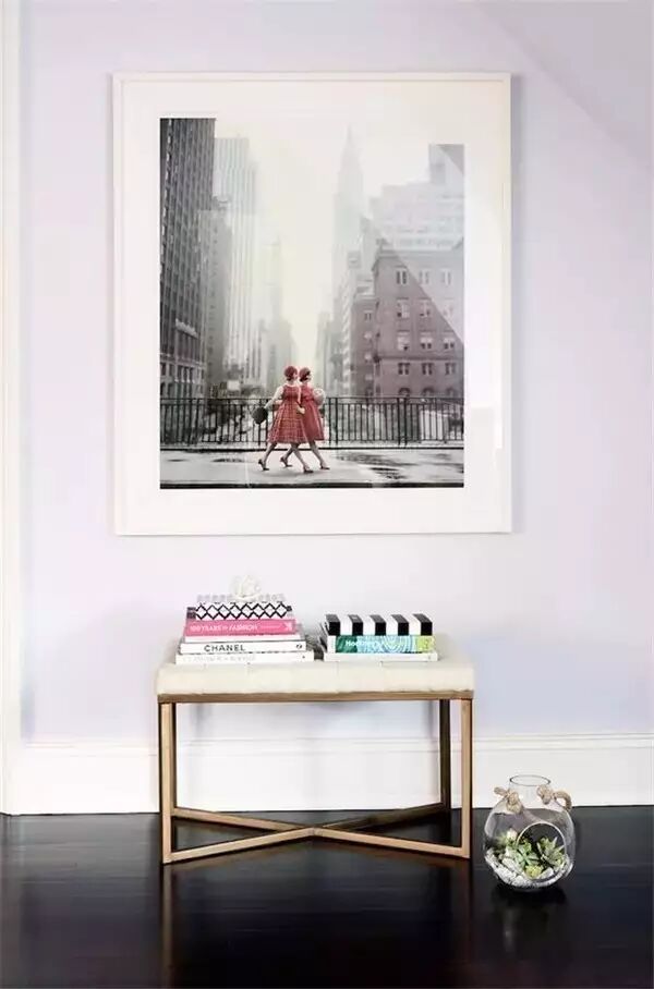 通常的挂放高度是在水平视线的地方,或是比水平视线略低的位置。所以单独一幅画不要贴着天花板之下挂放,就算你很高、这就是你的水平视线,也不要挂在这个位置,因为会让空间显得很压抑。