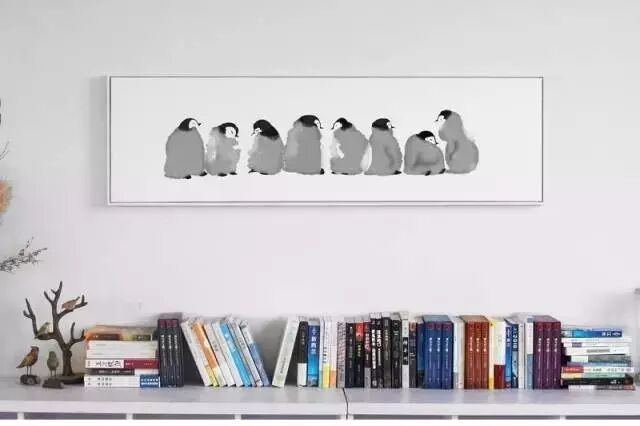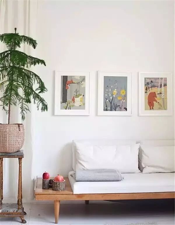一些可爱的卡通动物图也很适合简约风格,这类挂画能给素淡的客厅带来些许趣味性,但又不会因为亮点太多而显得累赘,两者正好形成互补效果。