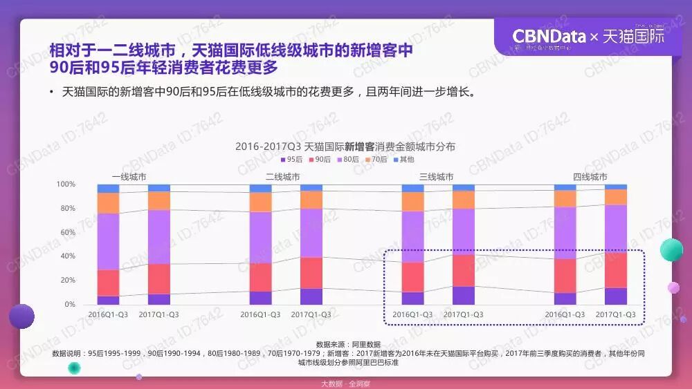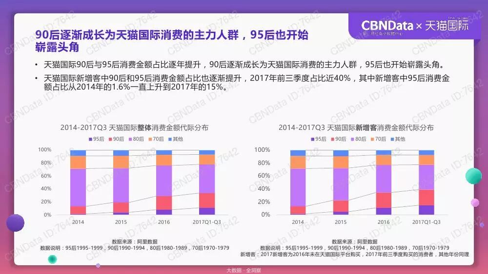 12月28日,第一财经商业数据中心(CBNData)联合天猫国际发布了《天猫国际跨境消费洞察报告——线上90、95后消费人群浅析》(以下简称为CBNData《报告》),以阿里巴巴2014年-2017年9月消费数据为基础进行分析,全方位洞察中国天猫国际发展趋势和用户行为特征,助力电商企业商业决策。