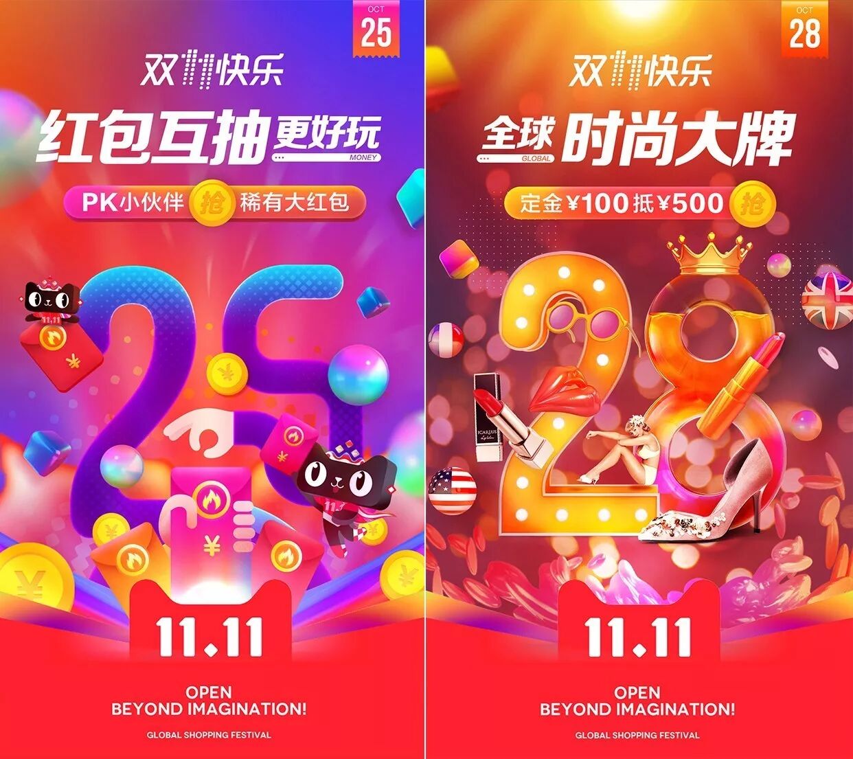 2017的波普风设计可以说是大放异彩的一年,其中应用最广的就是电商行业。你看看天猫双十一为了让你剁手搞得有多骚气就知道了。