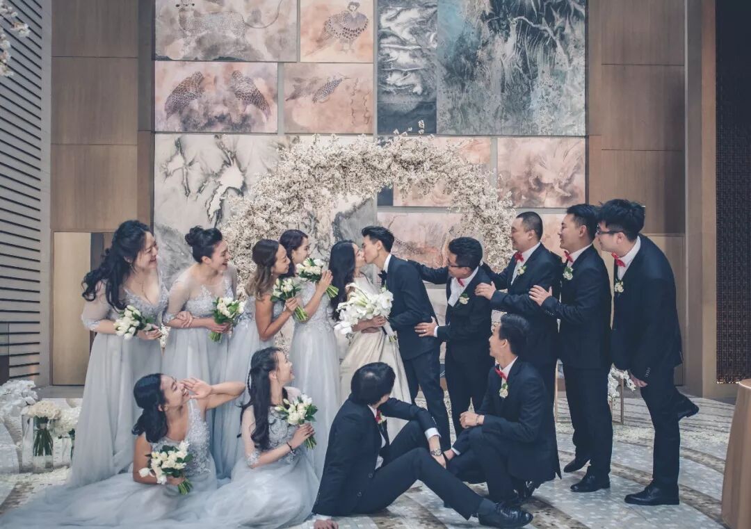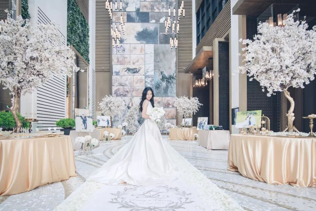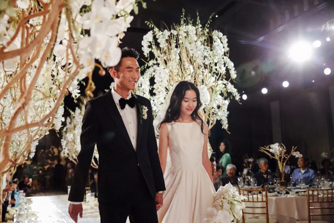 作为一个不折不扣的“颜狗”,我承认第一次看到这场婚礼,是被它清新的白金色布置所打动的。酒店宴会厅也很高端大气,我可能被它种草了,一直心心念念的啊,也想去那里办一场婚礼。