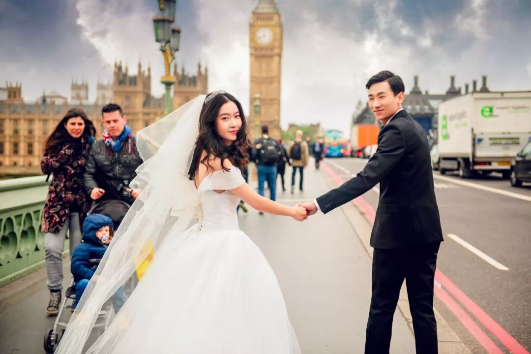 如果新人比较浪漫,可以选择唯美的巴黎。如果新人是可爱型的,可以选择樱花遍地的京都。如果是和我们一样比较内敛的新人,不妨选择伦敦这种古朴厚重的城市,新人更容易融入街景,无须过多的“表演”。