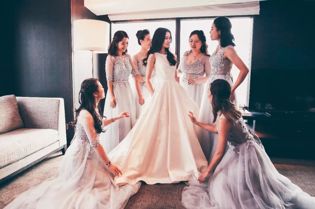 Tips:和我一样胸比较平的准新娘,定制时一定要求在婚纱里加胸垫。胸型会比带nu bra 完美很多,而且舒适度高,也避免出汗脱落的尴尬。