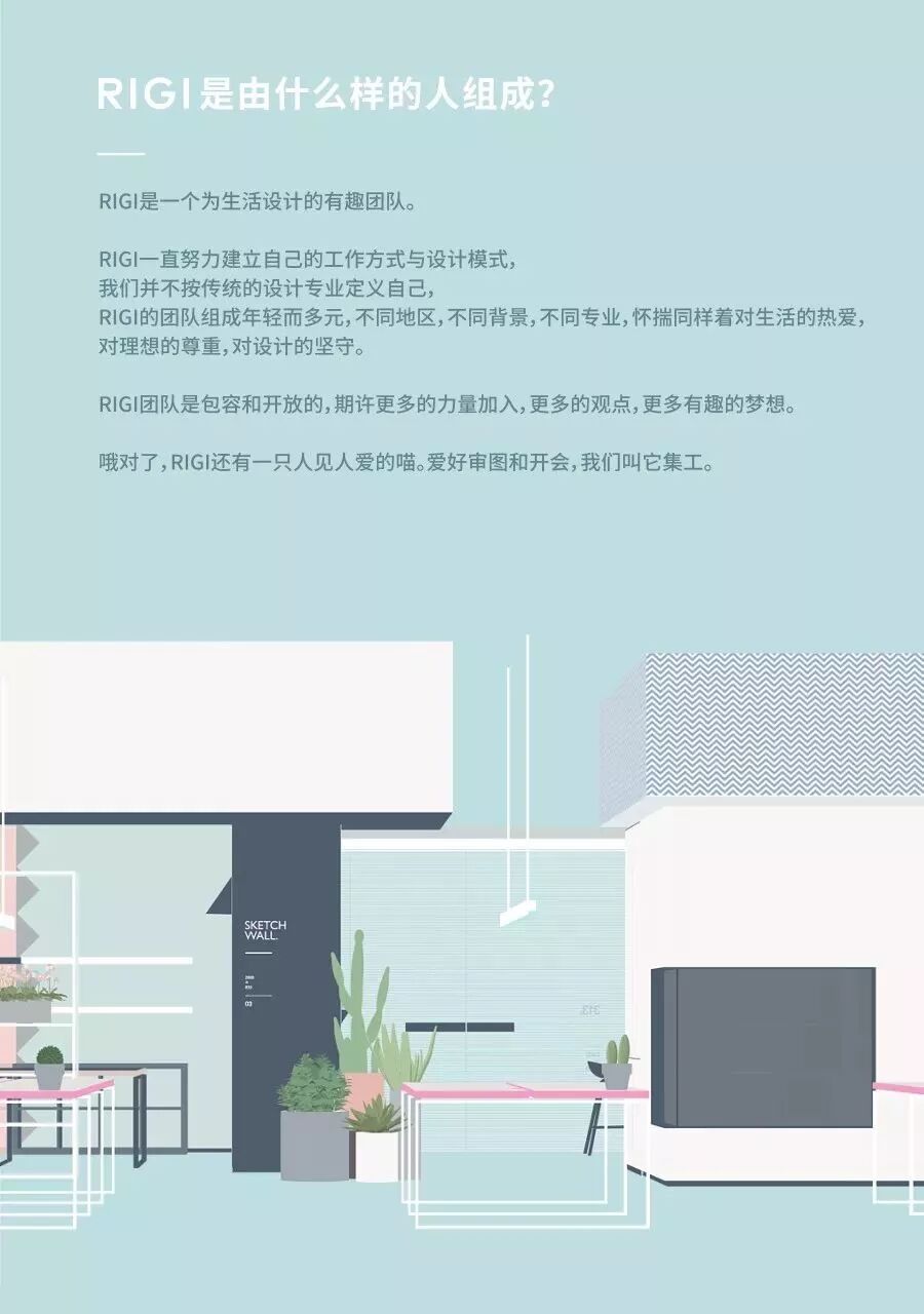 RIGI欢迎富有时代精神,对新商业以及新生活方式抱有热忱,认同RIGI设计观的空间设计师与平面设计师加入。