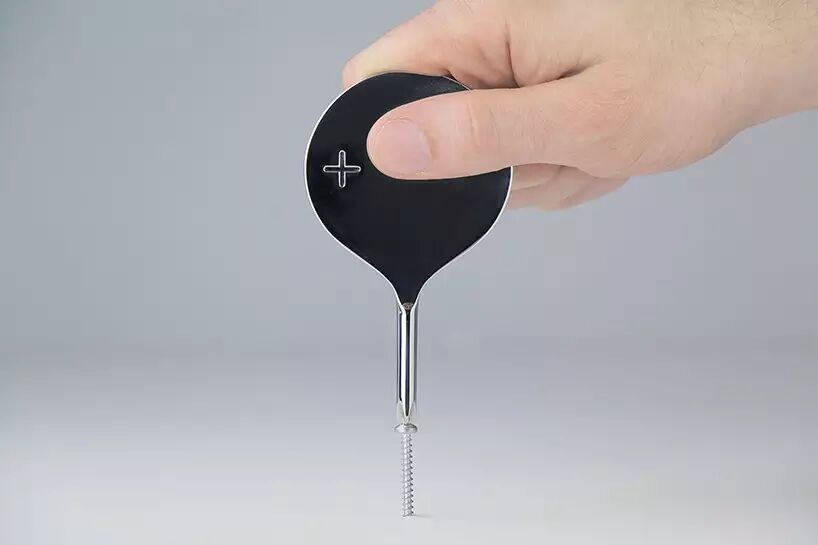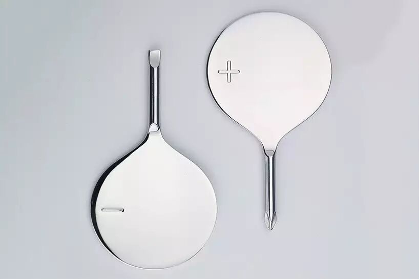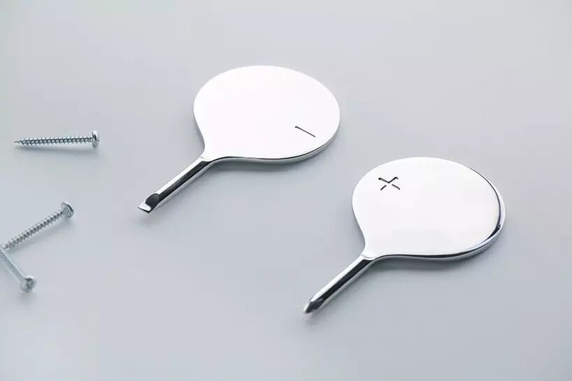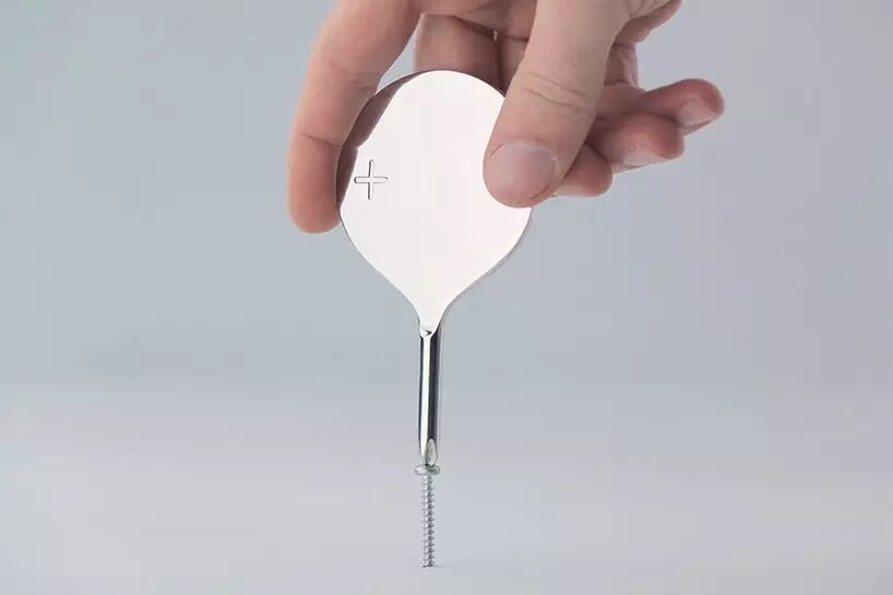 erdem selek为salone satellite设计的这套作品由经过抛光的不锈钢打造而成,精心的外形设计能够与双手实现完美的配合,同时放在桌子上的时候又像是一个小巧而又精美的手工艺术作品。更为重要的是,刻在上面的加号与减号标志是为了方便人们区别两款螺丝刀哪款是用来拧螺丝的,哪款是用来卸螺丝的。这套作品由phillips #2与3/16”平叶片两款螺丝刀组成。
