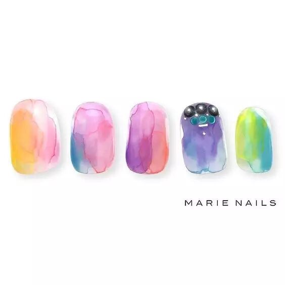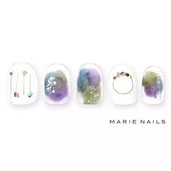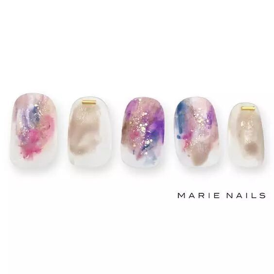 先上我最近超爱的水彩风美甲,如同一场春雨,朦胧而浪漫。