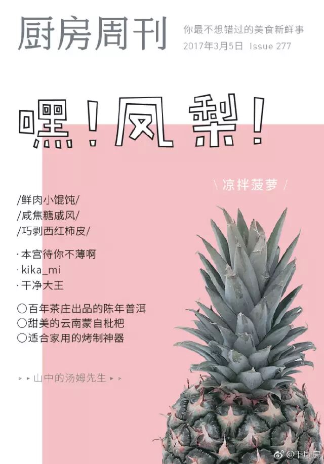 今天,文案君分享下厨房在其官方微博公布的299期《厨房周刊》文案: