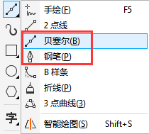 CorelDRAW X8钢笔工具和贝塞尔工具位置: