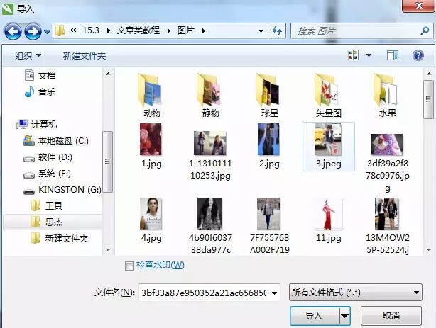 步骤一 执行“文件”→“导入”命令,组合快捷键是(Ctrl+I),或单击属性栏中的“导入”按钮。弹出“导入”对话框,若要选择多个图像,可按住Ctrl键的同时单击图像文件,如图所示。
