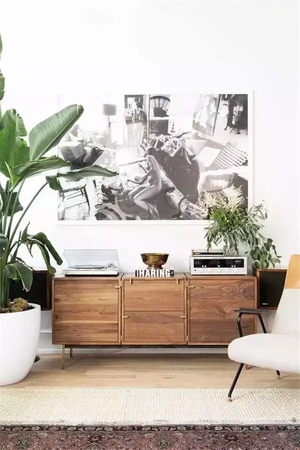 由于大面积高纯度的色彩在简约风中很少被使用,因此选择挂画可选颜色鲜艳明快些的抽象画;或简单大方的线条图案、几何图案,以达到点睛的装饰作用。