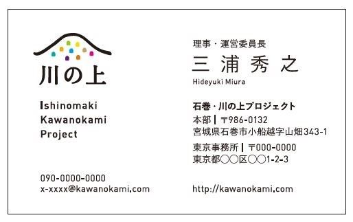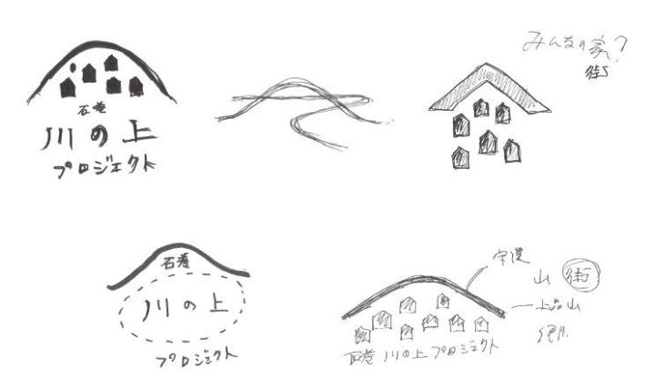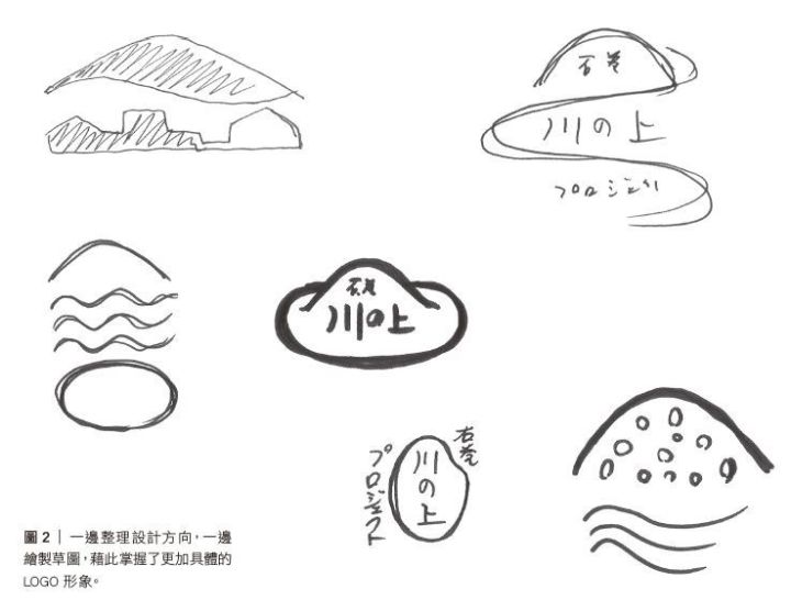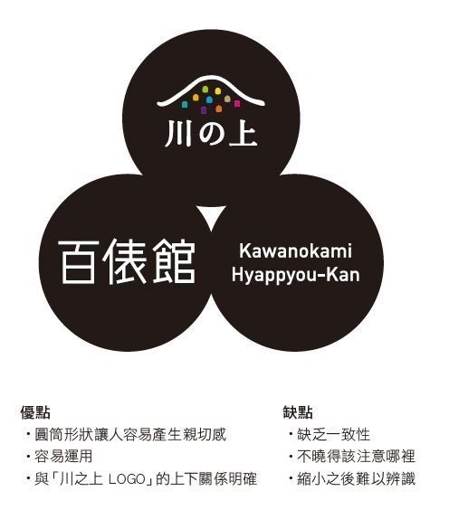 从这些目标中,我想到加上以英文 显示、尺寸较小的专案正式名称,将 来也可以省略英文,单独使用「川之上」这个 LOGO 。