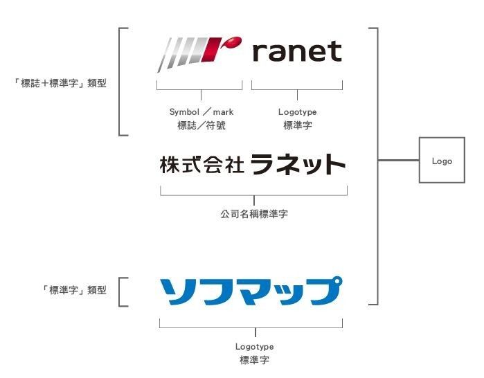 LOGO 大致可以分成「标志+标准字」类型与「标准字」类型。称作「标志」或「符号」 的部分,是代表企业理念或业种而设计出来的象征图案;而「标准字」是以公司名称或品牌名称的文字为主,设计成具有可读性的符号。此外,设计「○○股份有限公司」等企业正式名称的部分,称作「公司名称标准字」。
