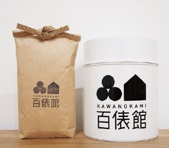 这是开幕纪念日送的咖啡罐(百俵罐)以及当作群 众募资礼品的一合装米袋。