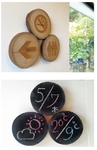 用来告知百俵馆开馆的相关讯息,为了放置在容易吸引来客目光的场所,而制作成直立式招牌。背面是房子形状的黑板,可写上要向来客传达的讯息。