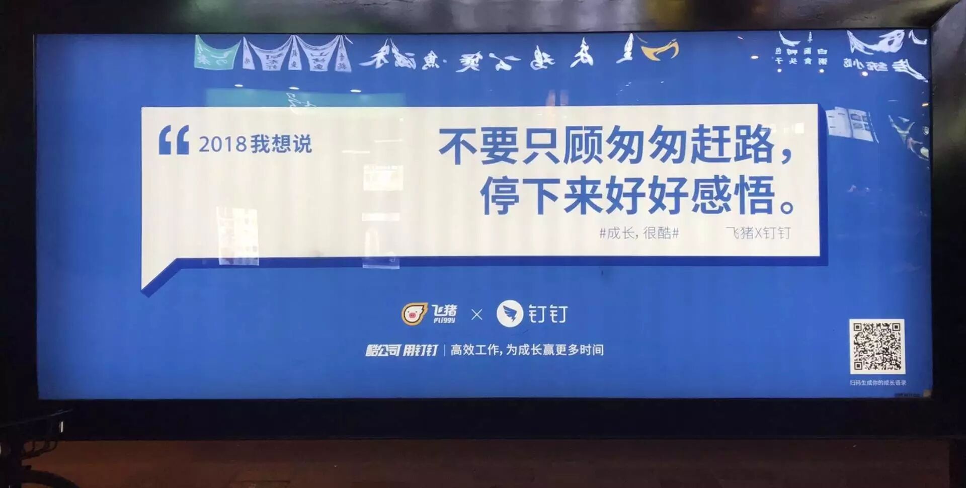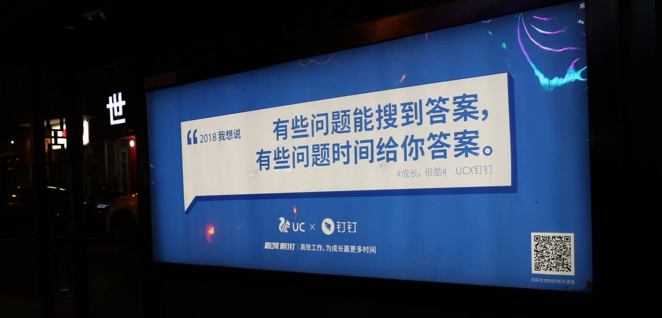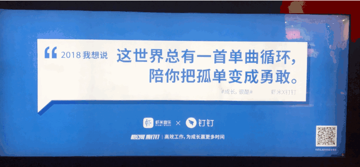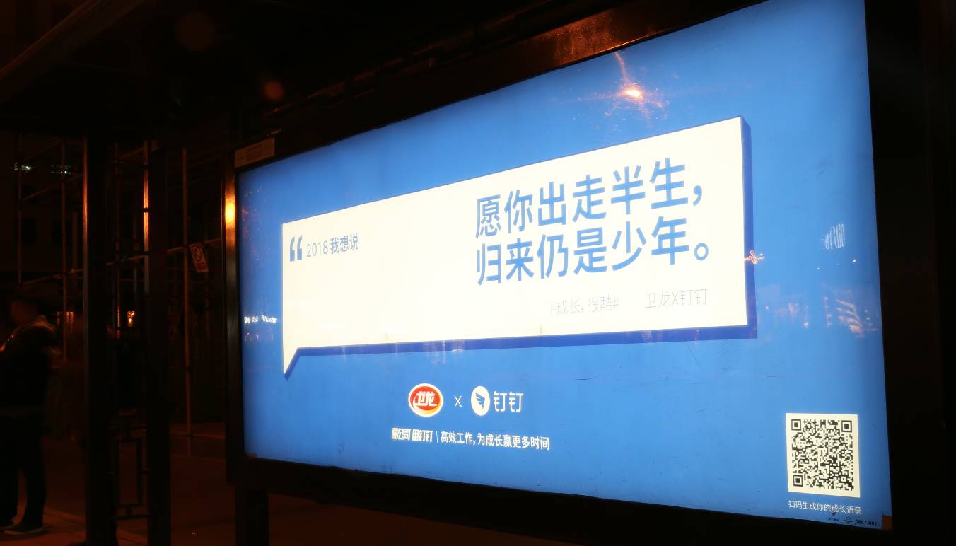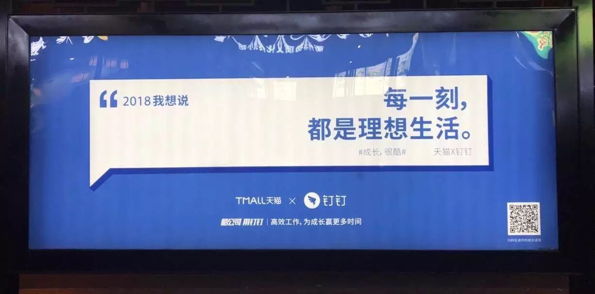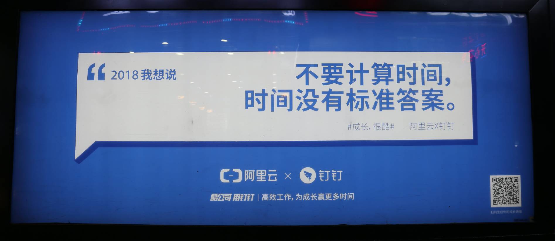 然而,就是在这个“人一励志,上帝就发笑”的风气下,马云的阿里巴巴钉钉却反其道而行之,最近在候车亭投放了一组主题为“成长,很酷”的公交站台广告,联合了60多个品牌、媒体、自媒体展开了一场对于2018年的集体对话,这60余句新年寄语,打动了无数正在奋斗中的人: