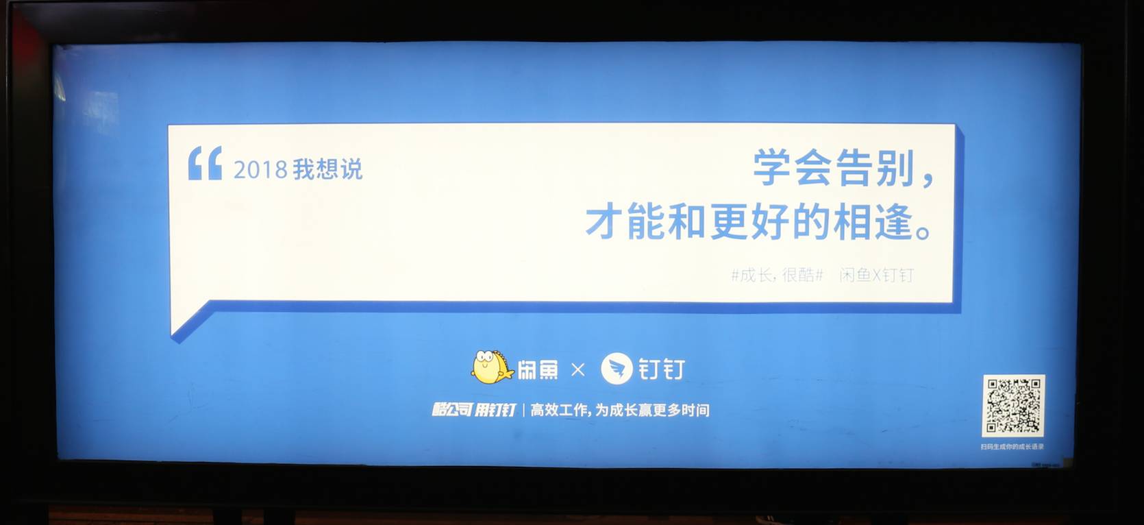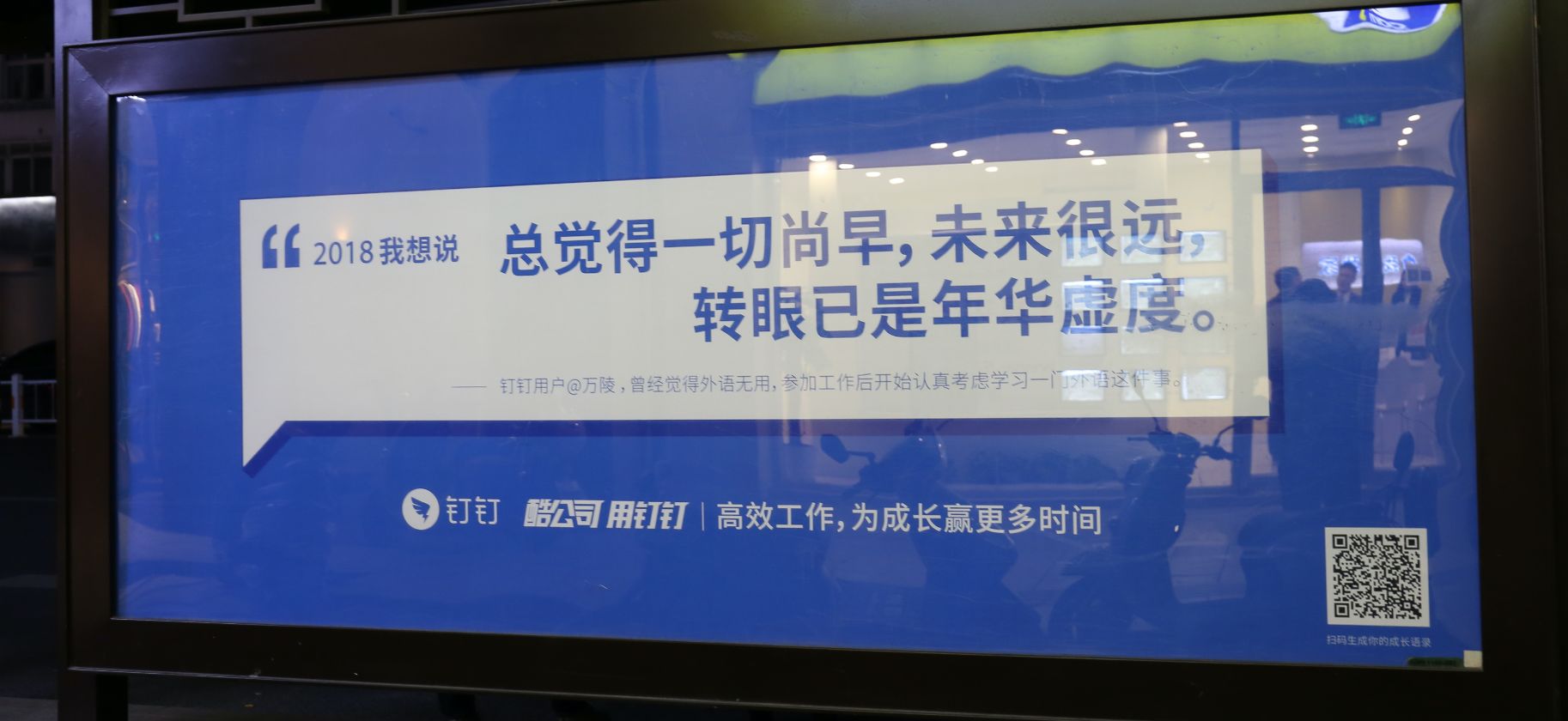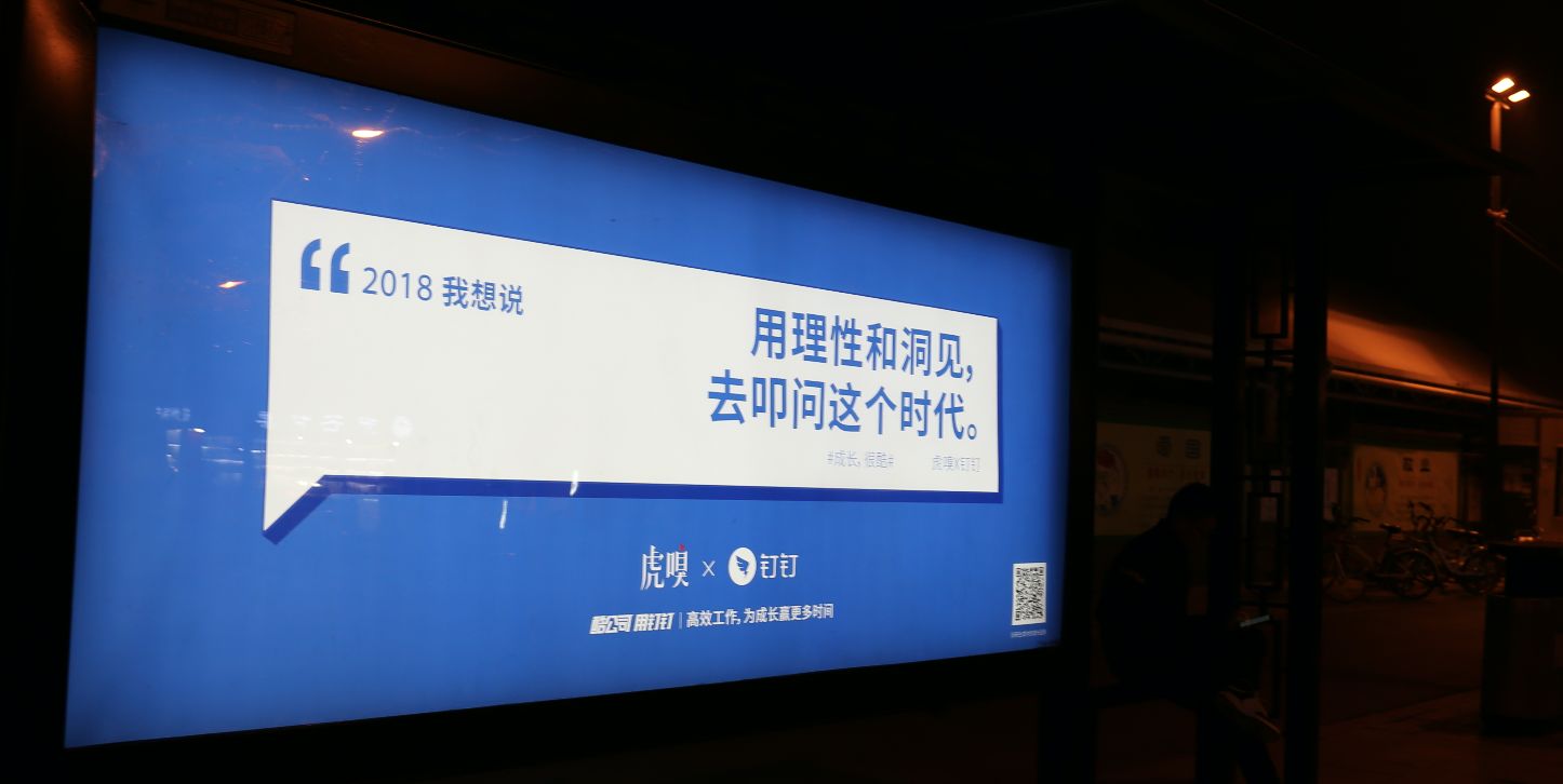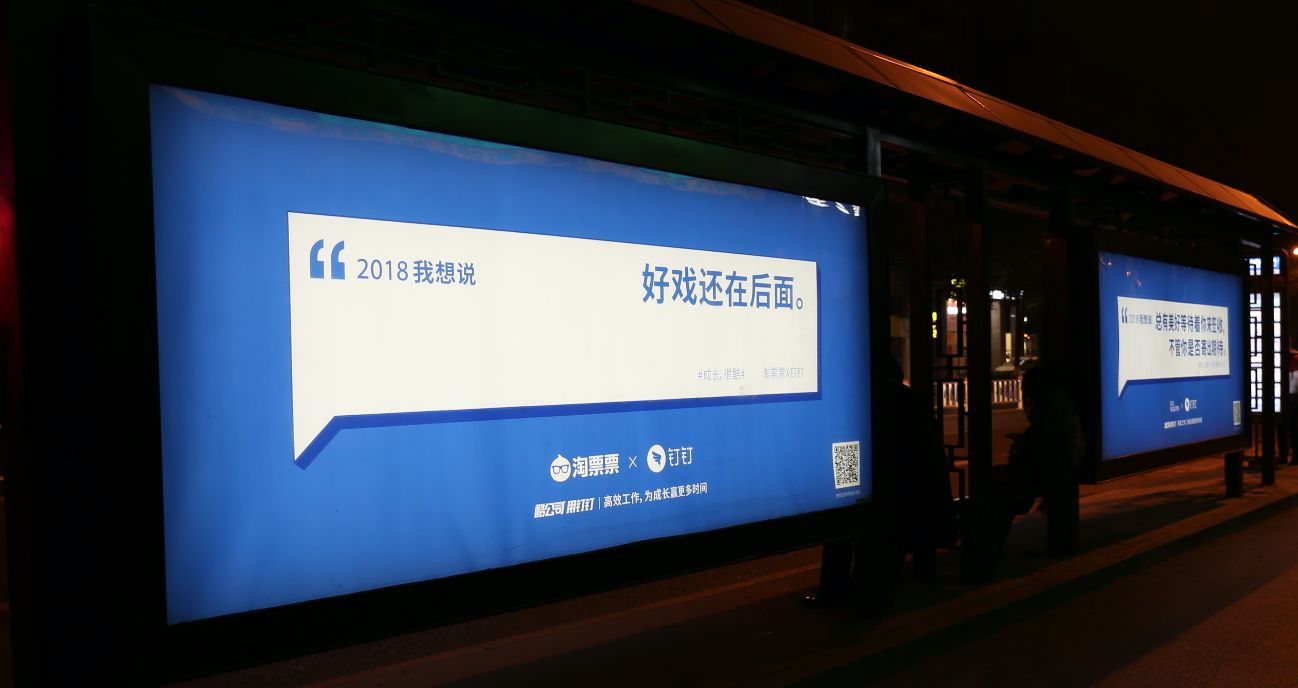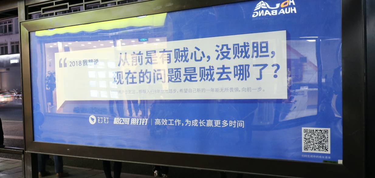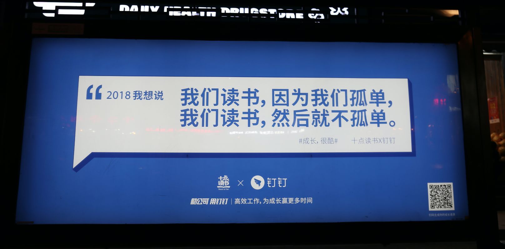 然而,就是在这个“人一励志,上帝就发笑”的风气下,马云的阿里巴巴钉钉却反其道而行之,最近在候车亭投放了一组主题为“成长,很酷”的公交站台广告,联合了60多个品牌、媒体、自媒体展开了一场对于2018年的集体对话,这60余句新年寄语,打动了无数正在奋斗中的人: