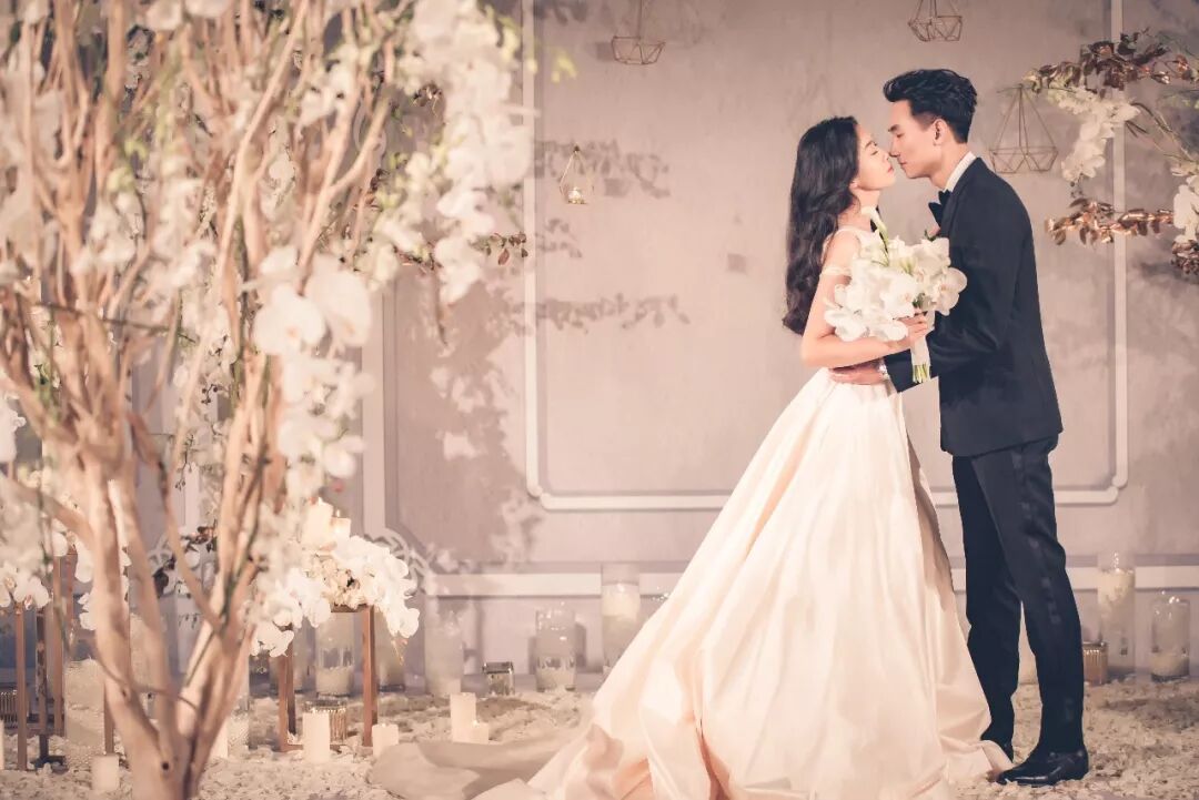 作为一个不折不扣的“颜狗”,我承认第一次看到这场婚礼,是被它清新的白金色布置所打动的。酒店宴会厅也很高端大气,我可能被它种草了,一直心心念念的啊,也想去那里办一场婚礼。